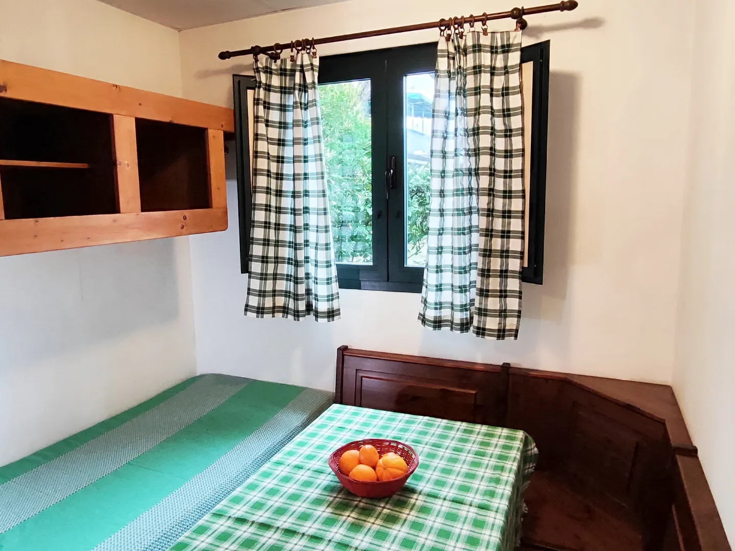 All’interno troverai un letto matrimoniale, un letto singolo o doppio a castello per bambini, un bagno con doccia e un angolo cucina attrezzato. Tra le dotazioni sono presenti frigo, zanzariere, spazio guardaroba e biancheria, per offrirti tutto il necessario per una vacanza comoda, semplice e senza pensieri.